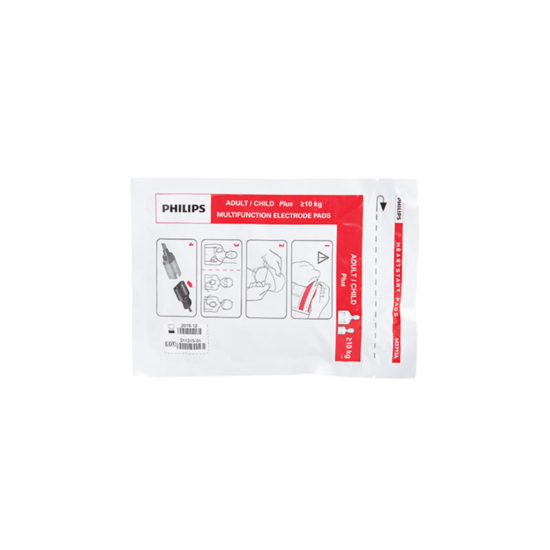 Elettrodi multifunzionali per adulti per Philips Heartstart XL+ e MRx Attenzione: se utilizzate con il Philips Heartstart FR2 o FR3, le placche vanno bene solo per pazienti con un’età dagli 8 anni in su, o un peso superiore ai 25 kg. Confezione da 10 pezzi Specifiche